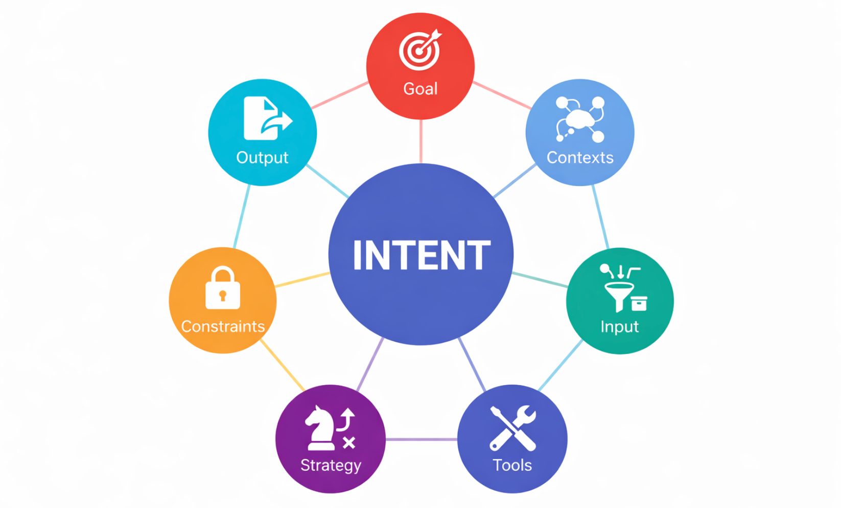 因此,在 AI 自动化的语境下,问题不再是 “如何让模型理解一句话”,而是如何将这些不确定、分散的意图碎片,收敛为一个稳定、明确、可被执行和验证的结构。这也正是意图工程需要解决的核心问题之一:将原本依赖人类共识与沟通成本的隐式意图,转化为一种可被系统理解与计算的显式对象。